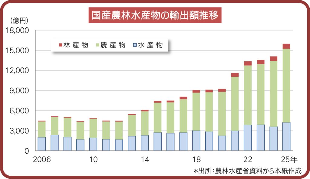 農林水産省は3日、2025年の農林水産物・食品の輸出額を発表した。水産物は前年比17%増の4231億円で初めて4000億円を超え、過去最高だった23年の3901億円を更新した。